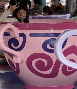 コーヒーカップ グルグル回すので、母も父も付き合えない 見てるだけで目が回るよ