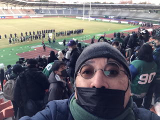 スタンドの大半は明治大学の応援が多いように感じましたが、僕たちは楽しいラグビーが見られれば十分