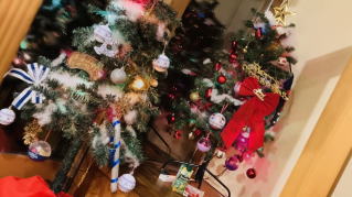 クリスマスツリーにサンタさんへのお願いを託して おやすみ〜