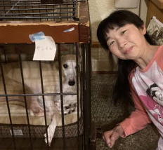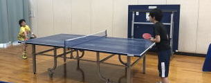 夕方、お友達がロクを誘いに来てくれ 体育館で卓球の練習相手をしてきました