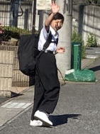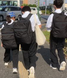 雨の朝、 学校へ行ってまいります 夕方、塾へ行ってまいります