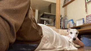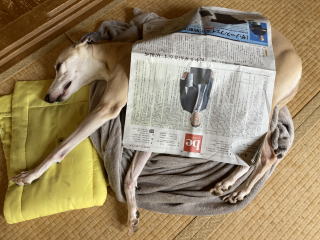 お腹を冷やさないように? 新聞紙を掛け布団代わりに