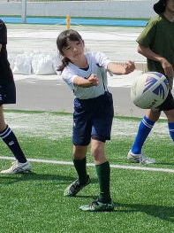 小学生の時は主にウイング(守備陣形の大外に位置する点取り屋)のポジションをやらせてもらうことが多かったのですが、中学からはスクラムハーフ(前衛守備陣と後衛攻撃陣をパスでつなぐ役)に取り組んでいます
