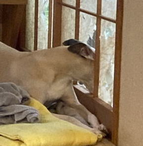 こっちの障子紙も穴開けてやったわ 完全に外が見やすいわ
