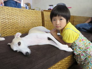 このワンちゃんはお母さんです。。。。 違う違う 私のお母さんじゃなくて我が家の新しい家族になる子犬のお母さんです。 「ウィペット」というちょっと珍しい犬種を知り合いの紹介で譲ってもらうことになりました。 |